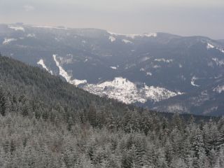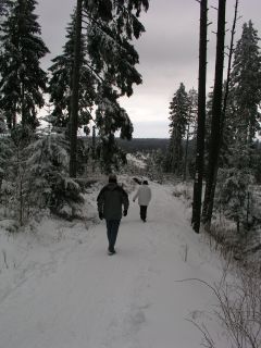Bei unserer 5. Wanderung am 28.01.2007 am Kaltenbronn hatten wir wieder großes Glück mit dem Wetter: Es waren zwar keine richtig gemütlichen Temperaturen, aber es war das einzige richtige Winterwochenende im Schwarzwald im Winter 2006/2007. Eigentlich hätten wir gar keinen “Farbfilm” gebraucht.