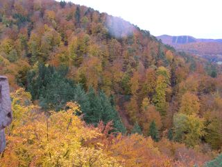 Fast hätten uns am 30. Oktober 2010 die Neulinge von auswärts verpasst, aber da die anderen auch später eintrafen als geplant, fanden wir alle zusammen und unternahmen mit 3 km die kürzeste aller bisherigen Wanderungen durch den wunderschön herbstlich gefärbten Wasgenwald. Hätte es am Anfang nicht stark geregnet, hätten wir wahrscheinlich die ganze vorgesehene Strecke bewältigt. Aber auch so war es ein schöner Nachmittag mit einem leckeren Abschluss in Niedersteinbach.